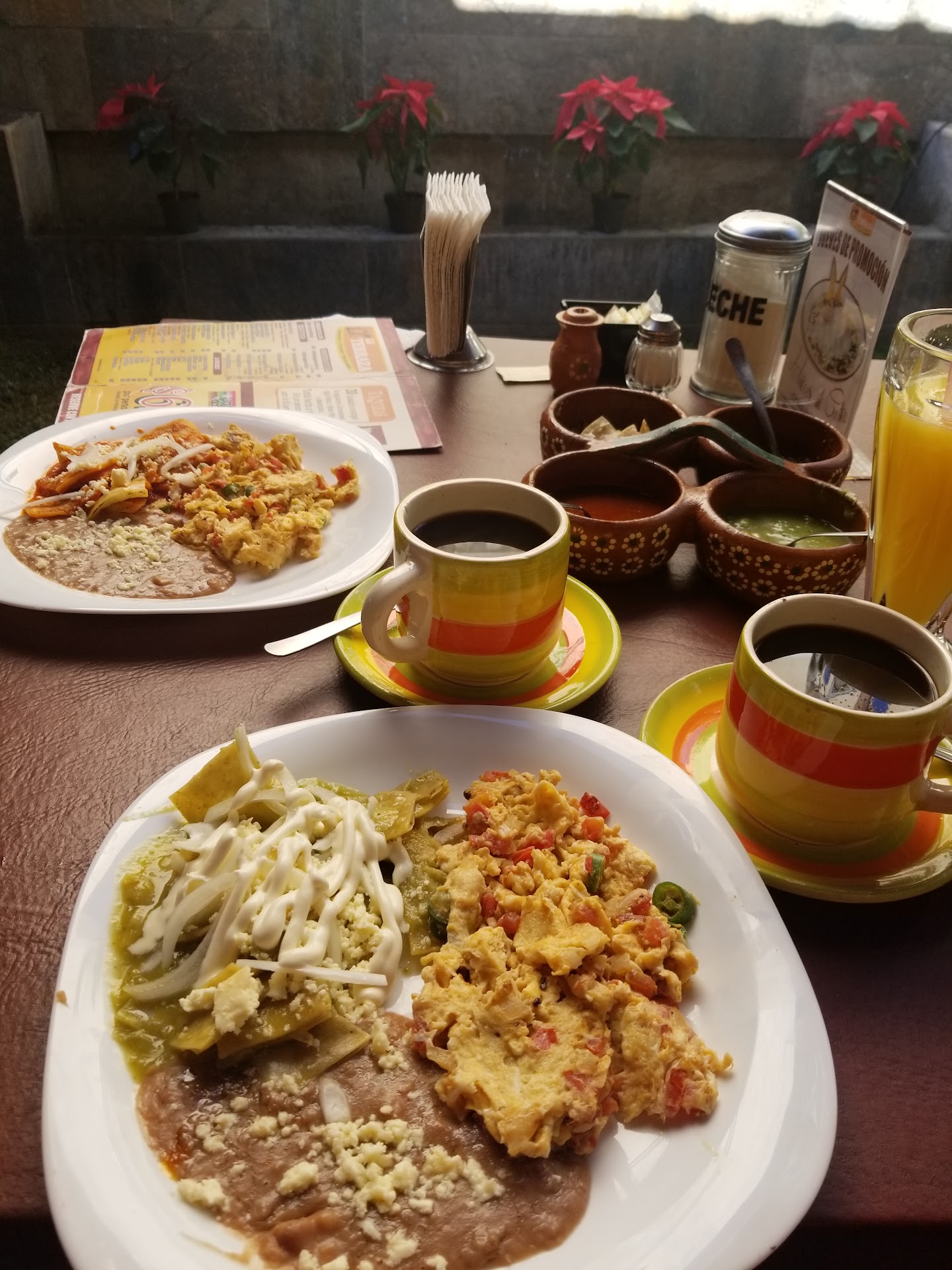 Read moreSoy un cliente por muchos años de este establecimiento, desde que iniciaron se podría decir. No había venido desde octubre del año pasado, mi sorpresa fue que aumentaron bastante los precios y las proporciones ya las disminuyeron, siempre pido los chilaquiles con pollo, por lo mismo que la porción era bastante generosa y mi hijo los wafles con helado, se tardaron muchísimo en traernos los alimentos, le sirvieron primero a una familia junto a nosotros, dije bueno vale la pena la espera, mi sorpresa fue que la proporción era poca por los 88 pesos que se pagan y además el pollo solo eran unos cuadritos muy pobres la verdad. Ojalá tomen estos comentarios como crítica constructiva, si me deja un mal sabor de boca, pero lo bueno no dura siempre. El sabor bien y cafe...