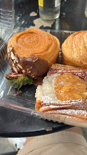 We came to this place just to try the “Croissant New York Rolls’, and they did not disappoint but getting ‘one’ the last one as we stood in line for a good 30min with only 3 people ahead of us. When we arrived they had about 20 of them Rolls. Here is my overall review: If you enjoy bad service with a dose of no urgency at all, witnessing a total chaos amongst the servers/registers staff and enjoy flies in the establishment, this is your place. Horrible service, they are an utter mess, they (employees) cut you off, every 2 minutes while you stand in line for a certain pastry while yelling they cannot save them for a customer but serving them to the tables instead with no regard for the waiting customers standing in line, they somehow/someway ran out of plates, and were loud...