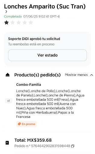 Pedí por aplicación y enviaron todo el pedido mal, la tienda se lava las manos y el pago fue en efectivo, poca atención al servicio al cliente y al parecer poca falta lectora de los colaboradores de esta sucursal, no pueden seguir una simple comanda de como el pedido estaba hecho y inventan que uno solicito cambios cuando no es así , en el mensaje claramente dice que un lonche sin cebolla y los 3 partidos es todo jamás dice los 3 enviénlos de pierna o de panela etc si se selecciono los ingredientes no se porque no seguir la comanda y si no para eso está el chat con el usuario pregunten si los 3 serían del mismo no solo envíen los 3 del mismo sabor (pierna) y los 3 del mismo sabor de agua dulce, se lavan las manos diciendo que yo los pedí así cuando en ningún lado solicite el cambio de pedido. Ahora entiendo porque la tienda tiene tan mala calificación en redes por debajo de 4.0 cuando la sucursal del centro y otras ofrecen buen servicio, ahorrense la pena y pidan...
