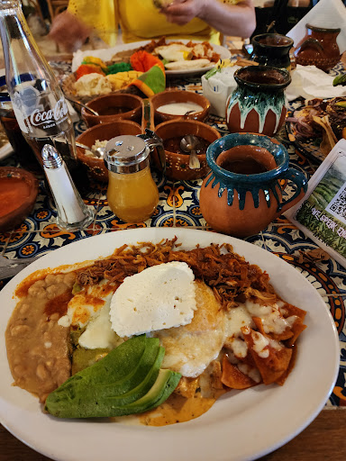 I had breakfast here with friends a few days ago. First, the restaurant is beautiful, classy, roofed but open in the front (no worries, Guadalajara has wonderful weather), you're greeted by a gorgeous old carriage, and by staff dressed in traditional charro attire. The menu is extensive, offering a variety of chilaquiles and many other entrees. There are red, green, mole, poblano, and other kinds of chilaquiles from which to choose. I had some with egg, and extra grated cheese and loved it.