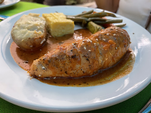 Solo on a Saturday evening at 6pm-Iâve been trying go to different restaurants so tonight was Manix 2. Only 1 other car parked there-I walked in to a very dark huge dining room filled with 60âs decor and many huge tables-I peeked on their patio and opted to sit inside -after browsing the menu-I ordered the Chicken Florentine with vegetables and asked for twice the âcorn soufflĂ© â instead of potatoes. I had read about the corn soufflĂ© and was so excited! -server brought a little plate with 2 little slices of French bead(slightly warmed with a pat of butter) -then my plate came-a nice little chicken breast with some spinach and melted cheese on top and the plate completely drenched in a bad sauce-mostly butter-the corn soufflĂ© -was 2 little 1 inch squares about a quarter an inch thick-tasted like undercooked jiffy cornbread- NOT what I had expected- wry disappointed-I could have made this at home-and better! Sorry-Iâll not be back! With an Iced tea it...