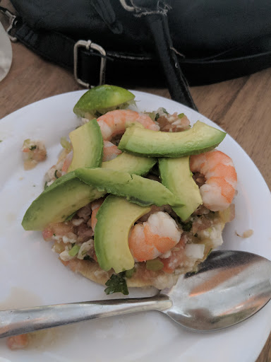 Read moreAmazinggggg.ceviche de camarones (huge) with avocado, tostada de camarones (juge), flan, sweet rice and some other delicious dessert...very affordable, excellent, even got a guitar player to entertain and...