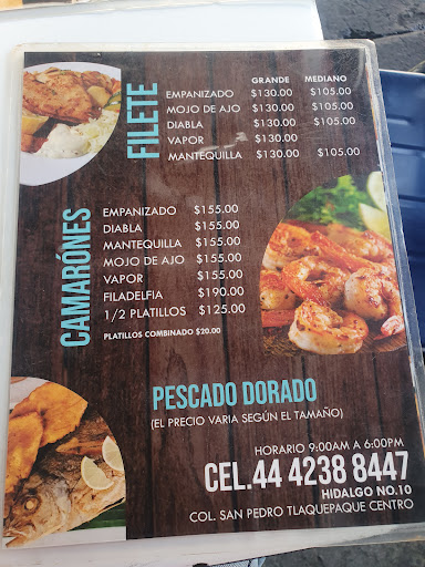 Great food different shrimp dishes Al mojo de Ajo empanizados a la diabla ceviche big portions of fish. Big shrimps different items on menu serve half portions as well if u buy the regular plate of fish 🐠 shrimp 🍤 or combination GO WITH A BIG APPETITE THE PORTIONS ARE BIG... VERY GOOD FOOD VERY CLEAN PLACE LOTS OF TABLES QUICK SERVICE CHEAP PRICES I'VE EATEN THERE PROBABLY 30+ TIMES OVER THE YRS. TAKEN FRIENDS AND DATES ALL LIKED THE FOOD... HIGHLY RECOMMEND EATING THERE COLD BEER AS...
