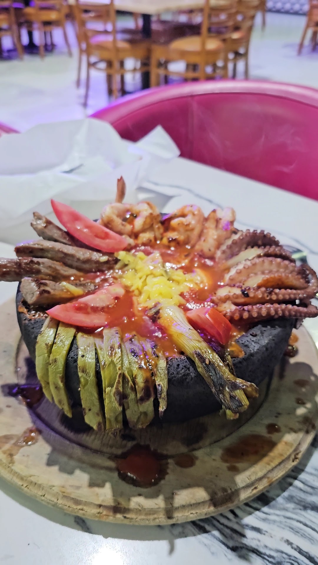 Read moreEn general buen lugar, probamos varios platillos, filete al mojo de ajo, pulpo zarandeado y Molcajete de pulpo y camaron, todo muy bueno, lo unico que si es de observacion es que para este ultimo, el molcajete de camaron y pulpo, en el menu venia una foto donde se veia bastante sustancioso, sin embargo, al recibirlo realmente pues vaya decepción (Les dejo las fotos), venia literalmente a la mitad, lleno de cebolla y pepino, como 5 camarones y 5 pulpos, la salsa rica y el termino de los mariscos, bien, todo fresco y suave, pero la porcion si nos dejo algo decepcionados por la espectativa que teniamos, creo fue lo unico que no nos gusto, en general todo bien, el ambiente muy relajado y familiar, hay area de juegos para niños, tambien estacionamiento enfrente y en la parte de atras, hay mariachis que es de agradecer que son reservados y permiten un ambiente tranquilo. En general buen lugar, precio calidad esta bien, la cuenta fue de 1600 pesos por 3 personas pero no se espanten, esto incluyo los platillos que les comente mas 2 cervezas, 2 carajillos y 2 tragos de 3 shots cada uno que te ofrecen, en general me...