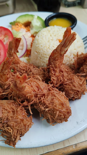 La comida es muy rica, los ingredientes son de baja calidad, pero el sabor lo supera, yo pedí un filete a la diabla cremoso y unos camarones, el filete 100/10 y los camarones un 3/10 Las porciones son muy muy grandes, realmente no te lo acabas, porque a parte de dan un plato de ensalada Las tostadas están equis