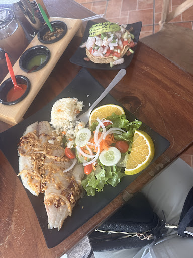Read moreAme el arroz, por que el arroz me recreó el sazón de mi mamá, y el pescado al ajillo, de muy buen sabor y sazón y picante justo , el ceviche de pescado 😌, !! Muy bueno, es un restaurante que de verdad vale la pena pasar y conocer, no es costoso al rededor de 24 usd para dos personas con entrada y bebidas