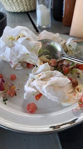 Llegué aquí por casualidad, en realidad buscaba algo que comer por la zona y donde sabía que venden tacos de pescado y camarón estaba cerrado por "vacaciones", así que encontré este lugar y llegué sin mucha expectativa. Aunque el lugar es agradable y la atención medianamente buena, dado que a pesar de no haber mucha gente tardaron en llevarme el menú, pero bueno, eso se tolera. Lo que si y es a lo que va mi comentario y calificación es que regularmente los lugares que venden tacos de pescado y camarón (tienen más variedad pero yo es a lo que iba) sirven el taco y uno se los prepara al gusto, bueno pues aquí no, y eso no está mal, me ha tocado otros lugares que así es, sin embargo su3len preguntar si "con todo" a lo que ya uno puede elegir que sí y que no. Pues yo asumí que al no preguntarme tendrían barra para prepararlos y no fue así... Cuando me llevan mis tacos, resulta que tienen ensalada de col con mayonesa, dos cosas que no puedo comer... La col por problemas gástricos y la mayonesa porque la detesto y literal puedo vomitar con solo olerla. Va, la col pasa, se la quito y ya. Cuando llegó el mesero y me llevó mis tacos le pregunté ¿la ensalada tiene mayonesa? Y me dijo que si, y se dio la vuelta. Ni siquiera se espero a nada más, mucho menos obviamente me iba a ofrecer una disculpa por no preguntar o cambiarmelos... Así que mejor "hice de tripas corazón" no quise amargarme la tarde, aunque así fue y decidí "quitar" la ensalada... Obvio fue un atascadero y desperdicio de servilletas y... Solo finalizo diciendo que por mi parte ni volveré ni recomiendo este lugar. Aparte, precios muy elevados a comparación de otros lugares...