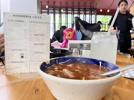 Read moreLa verdad no esperaba que me gustara el menudo porque soy de Veracruz y allá lo hacen diferente. Pero tienen muy buena sazón, así que si los recomiendo. También me gustó el panque artesanal que venden, me gusta acompañarlo con un café. La verdad para la zona y los precios que hay en Guadalajara no se me hizo tan caro. El lugar es pequeño, lo recomiendo para familias pequeñas. Por las mañanas suele llenarse y hay que anotarse en lista de espera, así que si pretendes comer ahí, anótate y ve a dar una vuelta al parque de la estancia porque van a tardar un poco en atenderte. La amabilidad del personal está bien, están al pendiente de si necesitas algo, no te quitan la comida sin preguntar, te ayudan con carriolas o silla de ruedas. Yo disfruto sentarme y pedir mi menudo rojo, luego mi café con panque, se siente un aire relajado, bohemio, un ambiente tranquilo y sencillo. Un lugar estupendo para tomar...