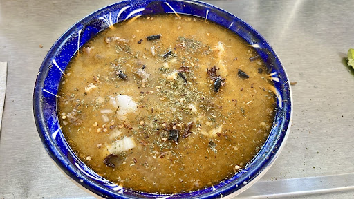 Pedí un menudo grande y mi esposa uno mediano, la cantidad de carne era la misma que el mediano, así que pareciera que solo me vendieron 10 pesos de caldo, la relación que todos conocemos precio calidad aquí no existe es algo caro para la calidad de los productos.