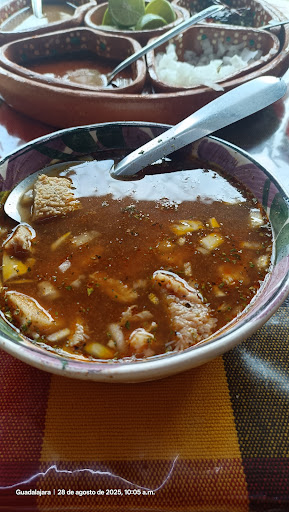 Read moreDesgraciadamente no tengo una muy buena opinión sobre el sazón del menudo 😪. Bueno primero diré lo bueno!.. El lugar está bonito y limpio (aunque el wc. No!). Son muy amables los muchachos, mesas cómodas y limpias, tienen tv., el jugo de naranja... Dulce y rico!.., Pero.. En cuánto al menudo, estaba demasiado salado, la carne no estaba bien lavada (esto porque tiene un gordo que se le quita antes de ponerlo a cocer, sobre todo al cayo, y pues la carne lo tenía), las tortillas (qué son recién torteadas 👍) sabían aún a cal (ésto es porque al hacer el nixtamal no le lavan bien la cal al maíz) y por lo tanto las tortillas saben aún y no esponjan. Esto es una observación constructiva para que mejore la calidad el restaurante, con ésta son dos veces que voy, porque si está bueno... Pues.... Aunque tiene sus detalles. Además que el sazón es peculiar, no sé de qué estado de la república sea el dueño que lo hace a ese estilo, porque no tiene el sabor común del menudo de Guadalajara. (si vuelvo a ir voy a preguntar a que estilo...