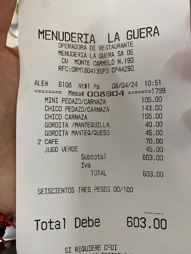 Recientemente tuve la oportunidad de visitar Menuderia la Guera para un desayuno y aquí comparto mi experiencia en base a lo que pedi que fue un menudo chico de carnaza con jugo verde