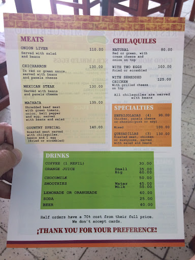 If you’re looking for authentic and delicious chilaquiles (fried tortilla with different tomato based sauces-red/green) then this place is for you! The chilaquiles with both red/green sauce were delicious. I ordered it campesina style (with carne asada/egg/beans) and it was delicious. (I asked to leave out the sour cream, onion, and possibly cotija cheese) the male waiter remembered my order and gave us good service. We visited twice for breakfast on our vacation. The banana smoothie was so yummy and nostalgic. I will be recommending this place to anyone nearby and must return one day. Cash...