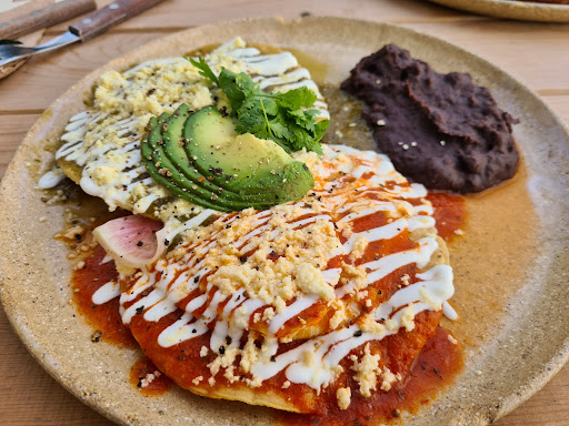 Savory and sweet with global inspiration, Shakshuka adjacent Tacos and Hamburgers, fans of Chilaquiles will find Miscelánea’s Mole version compelling thanks to fresh Chips and fragrant Cheese while traditional Molletes are benefited by housemade Bread.
