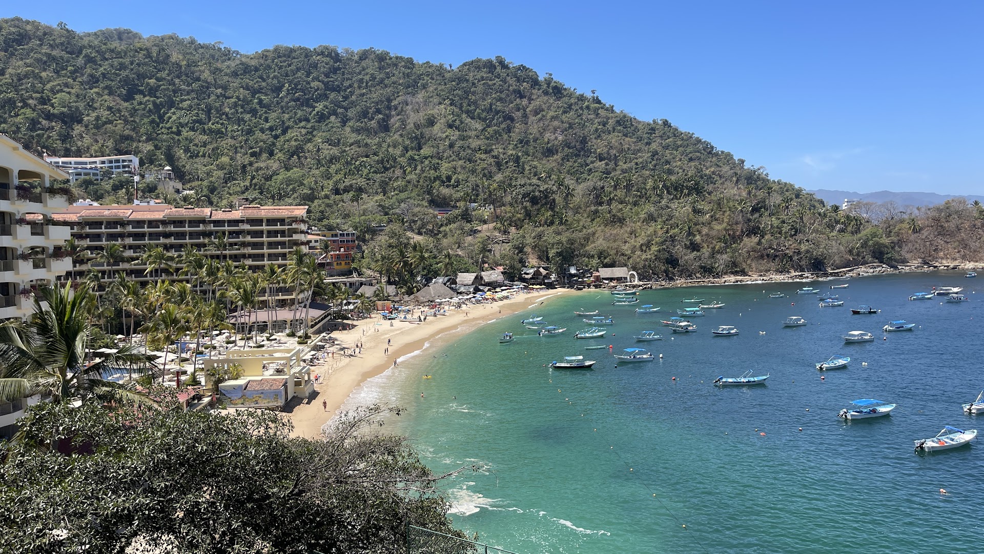 Mismaloya grill is located inside the La Jolla De Mismaloy Condos. It is a quick bus or taxi ride from town. Upon arrival, you will be greeted by the front door staff and ushered downstairs on an elevator. Reservations are recommended, but not necessary. When we did have to wait for a table, the staff offered us comfortable seating with a gorgeous view of Mismaloya Beach, which is below the condos. Be sure to arrive in time for sunset for the best views!