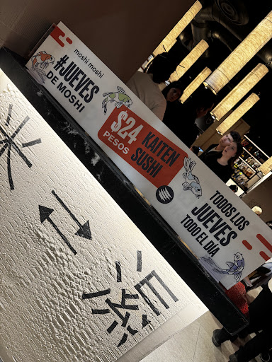 La cadena moshi moshi inició en la Ciudad de México con el concepto de sushi en banda. Aquí en Guadalajara si bien había moshi moshi en otras plazas, esta es la única que trajo el concepto de la banda, así que aprovechen!