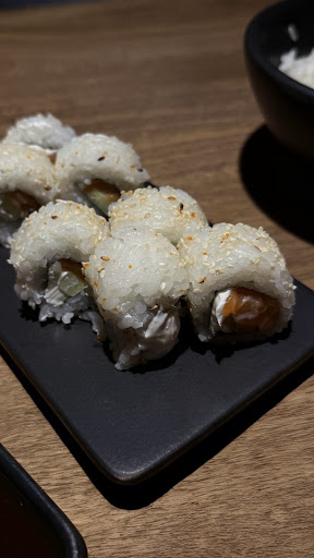 Read moreFui el dia 29-Agosto-2024 aprovechando la promocion de los sushies en $24 comprando una bebida. Los sushies son buenos, algo pequeños pero se "compensa" con lo que pagas, solo que muy repetitivos los sabores, ejemplo uno de salmon solo nos toco una vez el de masago 2 veces. El servicio se puede mejorar, solo que tu meser@ te atendera, si pides algo mas a algun otro mesero no te atendera. Rebeca nuestra mesera preferia limpiar sus mesas y recoger los trates sucios que traerte mas platitos de sushies y se desaparecia unos minutos llevando los trastecitos y sirviendo bebidas, no la recomiendo para que los atienda, esta en la terraza. Si quieren que les toque la banda de sushies tienen fila de espera, no entendi como manejan la reservacion o esperar, solo habiamos 3 familias esperando y en la banda 5 familias cuando alrededor no habia mas gente esperando. Los cockteles son buenos y los recomiendo. Sillas comodas y musica a buen nivel de volumen...