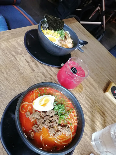 Llegamos el sábado 22 de junio a festejar mi cumpleaños , queríamos ramen con mariscos , mi hijo de 8 años come poco picante por los que pedí el ramen que me sugirió el mesero ,uno sin picante con panceta de cerdo, mi amiga uno con picante con camarones , mi novio un tepanyaki con camarón y yo un ramen que sugirió el mesero nuevamente sin picante con carne molida . OH 😞, PESIMOS ALIMENTOS , el de mi hijo sin sabor 😝 dejo el 90% del platillo, el de mi amiga sin picor todo insípido su ramen, mi platillo super mega picoso y el tepanyaki de mi novio con un peso de proteína osea puro arroz frito recalentado. Le comenté al mesero que si se habían equivocado en la preparación de los platillos de mi amiga y el mío porque en la imagen se veían invertidos los colores del caldo de los ramen y yo estaba enchiladisima. Solo pidió disculpas y trajo un platito con caldo no picoso para que REBAJARA EL SABOR DEL CALDO DE MI RAMEN. Obviamente no hicieron ningún descuento. Las bebidas de sake con frutos rojos traían super poco liquido y hielo en demasia al igual que el calpico de mi hijo . En particular el sabor es pésimo del disque ramen porque es solo un espagueti con caldo , nada el otro mundo en especial. El tepanyaki estaba un tanto recalentado el arroz porque estaba pastoso chicloso , masudo el disque tepanyaki . PESIMA OPCION PARA COMER O ADQUIRIR UNA EXPERIENCIA DE PROBAR RAMEN . ESO SI LA CUENTA FUE DE MUCHO MAS DE 1000 PESOS POR 3 RAMEN INSÍPIDOS Y UNO SUPER PICOSO SIN SABOR UN TEPANYAKI SIN PROTEÍNA CASI Y 4 BEBIDAS QUE FUERON SOLO HIELO EN UN 80%. POR ESO SIEMPRE HAY LUGARES DISPONIBLES Y NUNCA SE LLENA ESTE RESTAURANTE. CARISIMO Y PESIMO SABOR EN...