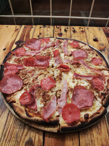 La pizza es la gran y terrible decepción, se ve hermosa y que va a ser un punch de sabor....oh no, nada de eso. El queso no sabe a nada, de verdad ¿que tan mal tienes que cocinar para dejar insípida una pizza de 4 carnes?