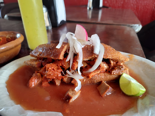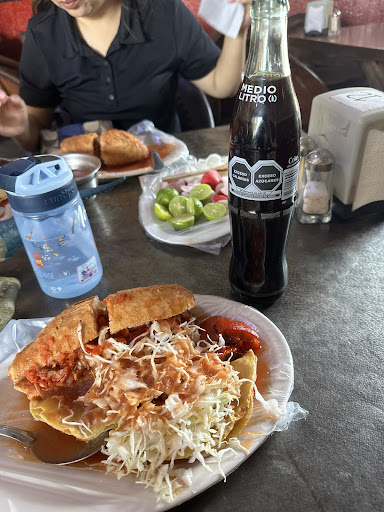 Read moreLlegando a el restaurante te ofrecen mesa y antes de sentarte siempre limpian y sanitizan las sillas y la mesa, acto seguido te preguntan que vas a querer, una vez que te sirven te ofrecen más salsa y picante si le quieres poner adicionalmente, son muy limpios y atentos con su servicio, recomiendo darse una vuelta a este lugar antes de las 2 para que encuentres de su variedad de la carnes a elegir para su torta ahogada ya qué se termina...