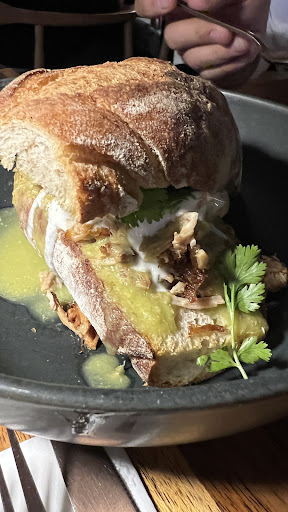 El lugar aunque pequeño bastante coqueto, parte dentro y parte terraza, el servicio excelente desde la entrada. No hay menus físicos así que pues a usar el qr de tu cel o te prestan una tableta por si acaso tu teléfono no agarra el qr. El menú en si no es muy grande pero si es muy diversos, con combinaciones y presentaciones MUY interesantes, platillos con huevo, chilaquiles, entrepanes y hot cakes 🥞 que están ENORMES, no los pedí, solo los vi pasar.