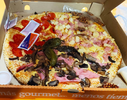 Read moreHace tiempo compré una pizza vegetariana, llegando a casa noté que era de carne, así que tuve que regresar a cambiarla, me dieron otra y todavía tenía pedazos de carne, se los comenté y así me la llevé, yo se los quité. Otro día regresé, al darme la pizza la revisé y tenía carne espolvoreada, así que me la cambiaron por otra que seguía teniendo aún trozos de carne, hasta pensé que lo hacían apropósito y decidí ya no ir, hoy volví a ir y les pedí que cuidaran que no tuviera carne porque las últimas veces me la habían dado así y yo no como carne. Me hicieron mala cara. Revisé la pizza y todo bien, pero al llegar a casa y comer, ahora la pizza...