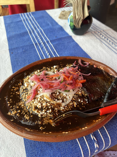 Read moreUn riconcito especial para disfrutar de la buena cocina del hermoso estado de Oaxaca, especialmente del istmo de Tehuantepec, para comenzar nos pedimos un guacamole con Chapulín, que te hacen acompañar con totopo de tortilla hecha a mano, una delicia, los chapulines están sabiamente sazonados y cocinados, después y como plato fuerte nos pedimos unas enchiladas con mole negro de Oaxaca y rellenas de quesillo, desde luego que no podía faltar una taza con café de olla al purito estilo de Oaxaca, además pedimos una jarra de agua preparada con guayaba y hierbabuena, una verdadera delicia, por último, no podía faltar el postre, pedimos un platanito macho con cajeta que te deja con ganas de pedir más, el ambiente y el lugar son muy agradables, te sentirás agusto, te lo aseguro, el staff es muy atento y estarán pendientes de lo que les solicites, los precios son justos, por si fuera poco puedes comprar algún recuerdo o productos elaborados en el estado y para ñas mujeres venden hermosos vestidos típicos regionales, accesibles para todos los presupuestos, claro que regresamos, muy...