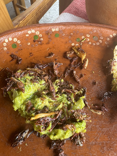 We went with friends from Oaxaca and we wanted to try real Oaxacan food as typical as possible. We sat in the open air dining area on the second floor. Every thing was prepared perfectly. We shared an appetizer: arrachera, memela , quesadillas, quesillo, frijoles, chapulines (see photo), guacamole, cebolla asada and chile toreada. Then a combo full of huge tlayudas, tasty garnachas and a pitcher of agua fresca de guayaba. So much food we took some home for later....
