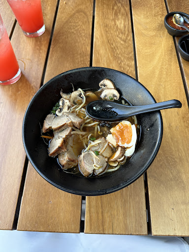 The food was delicious as well as the drinks. We had the spicy red miso ramen soup, dumplings and drinks on one occasion and another soup with the emperors (something) panko-crusted balls. Wowza. They're all delicious.