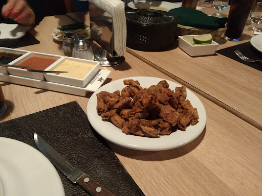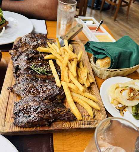 Es un lugar amplio y bonito, no se requiere reservación porque no es concurrido Tienen lugares de estacionamiento y servicio de valet parking por si se llenan. Al principio te sirven un bolillito muy rico, sus 3 salsas/aderezos estaban insípidos, al igual que la carne, pedí un vacío, estuvo solo bien, el termino del corte 3/4 fue el apropiado, le complemente con la sal de la mesa pero claramente no es lo mismo a qué la sazonen desde su preparación. Lo sirven con papas a la francesa, crujientes y algunas faltas de sal, sirven tortillas de maíz y harina y chiles toreados con cebolla frita. De entrada pedí una empanada de queso con elote, es pequeña, el queso rico pero igual se sentía como falto de sazón, aunque sea algo tan simple. Cuando te llevan la cuenta te dan pastillas de menta, me gusta ese tipo de detalles, pero por el mismo precio, me quedo con las opciones que ofrecen una mejor sazón y un servicio más cálido. El servicio fue bueno, pero no extraordinario ni particularmente amable, como muy tranquilo por los pocos comensales que había para todo el lugar. Otra ventaja es que tienen aire acondicionado, con este calor, se agradece. Lo recomendaría solo a alguien que se cuide mucho en el aspecto de la sal o a...