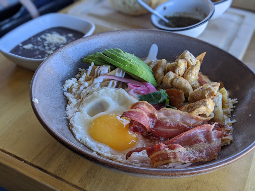 Sin duda, de los lugares mas sobrevalorados a los que he ido, al entrar te reciben bien y te toman la orden, pero al escoger la mesa notamos que estaba sucia, cabe aclarar que cuando el mesero nos dio las cartas las levantamos de la mesa esperando que este notara la suciedad, en cambio solo se nos quedo viendo hasta que le hicimos notar que estaba sucia, fue por un trapo y la limpio a medias, pedi un jugo de naranja que estaba rico, tardo unos minutos, pedi unos chilaquiles, al momento de verlos supe que iban a estar horrendos!!! Estaban llenos de crema y venian acompañados con pollo, el pollo estaba frio y duro, me hace pensar que lo recalentaron o algo por el estilo, los chilaquiles se sentian muy baratos a comparacion de lo que pague por ellos, si voy a una cocina economica seguramente mem harian mejores chilaquiles, mientras estabamos comiendo, llegaron unas personas a pedir mesa, pude escuchar que eran mas de 4 , en fin, el mesero no tuvo mejor idea que ponernos casi frente a frente, como si no le importara nuestra comodidad o privacidad,...