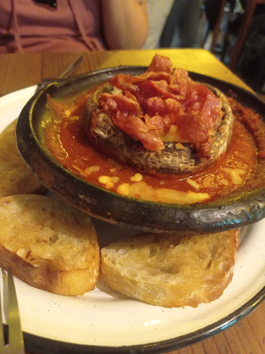 El portobello con tocino la verdad es una delicia tienes que probarlo al igual que las tapas con queso de cabra y jamón serrano.