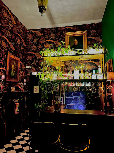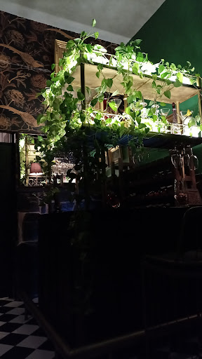 Read moreQué delicia de lugar! Es una casa antigua llena de arte antiguo, retratos y esculturas decoran su interesante interior.. Iluminación cálida y tenue que genera un clima íntimo. El exterior es una terraza con iluminación romanticona con musica en vivo tipo jazz... La musica y el volumen es muy agradable en el interior. La comida: la hamburguesa parece cara pero vale cada peso con esa carne en su punto, jugosa, tiras finas de cebolla, entre otros ingredientes todos frescos... Nada de cosas extrañas llenas de gordura grasosa tan de moda jajaja... pidan salsa con chile con trozos de cacahuate para acompañar su hamburguesa (no enchila). La pasta de la casa BUENISIMA cremosa con el sabor natural de los hongos... El menú tiene de todo pero con pocas opciones, pero es justo lo básico necesario para cualquier antojo. El servicio es muy bueno! Nosotros pedimos 2 hamburguesas, 2 cervezas artesanales, ensalada con higos, pasta de la casa y 1 copa de tinto por mil pesos. La foto es de una de las barras en el interior. En fb pueden ver las fotos de sus platillos que tal cual es lo que te...