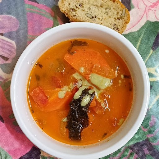 The potato soufflé was a standout—creamy, flavorful. The salad bar was a delightful mix of vegetables. I had beets, pico de gallo, and cucumber salad. I also enjoyed a fresh, cold fruit drink and ended my meal with comforting vegetable soup, rice, and delicious banana bread.