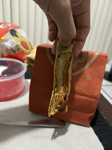Read moreCompramos para comer medio pollo y una orden de tacos lo cual todo estuvo pésimo. Para empezar desde la caja todo mal, ya no tenían tortillas para el pollo. Al llegar a casa para comerlo (después de 5 minutos o menos) el pollo ya estaba muy frío, lo cual me dio a entender que ya tenia mucho tiempo fuera de parrilla u horno. Lo peor fueron los tacos dorados que al parecer el relleno estaba crudo todavía, tiramos 4 de 5 y uno de los tacos como se ve en la imagen, despedazado y mal hechos. Resultado… terminamos tomando pastillas para el dolor...