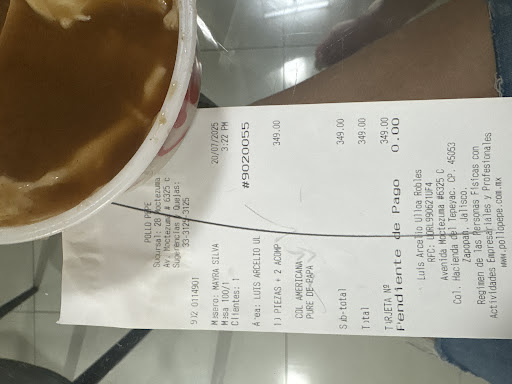 Read moreEl mejor de todos los pollos Pepe de la ciudad. Soy cliente asiduo de dichos pollos y por tanto conozco y he comido en una gran cantidad de sus sucursales, sin embargo, la sucursal de la que hago ésta referencia es por mucho la más superior a las demás, por su perfecta cocción del pollo , rapidez en los pedidos y una atención eficiente del personal. Muy buen sabor y servicio. Y vaya que si será la mejor opción de sucursales del pollo Pepe ya que tengo varias sucursales más cerca de mi domicilio y prefiero recorrer más distancia y gastar más gasolina y tiempo porque la recompensa en sabor y trato...