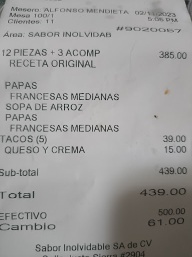 Read moreEn cuanto sabor todo bien excepto el pollo crispi, les falto dorarlo más. El ambiente un poco enfadoso con la música de banda que pusieron, creo que no es la ideal para un restaurante familiar. Lo que si de plano me gustó es que ya no tienen servicio de mesero en esta sucursal y les preguntas y te dicen que nunca han tenido meseros, tengo años viniendo así que estoy segura que sí había meseros, es molesto que no haya servicio y te tengas que parar por tus alimentos, pero más molesto qué te...