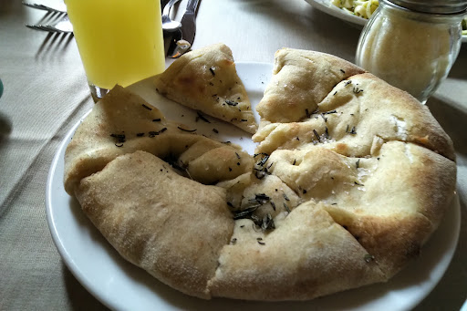 Glass of house red wine during lunch and a side of hot crunchy yet soft bread drizzled in light salt and basil served with extra virgin olove oil made the lunch...