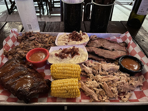 First time here. I had brisket and a side dish. They didn't have any type of BBQ sauce, and i had to use catchup instead. I also asked for fries as a side dish, but they told me they don't offer fries with my order. Although they had side fries if you order sandwiches. I also had cerveza de la casa red Ale. The beer was tasty. Overall, average food and service. I suggest to start carrying at least a couple of different sauces for ribs, brisk, and pull pork orders. Catchup...
