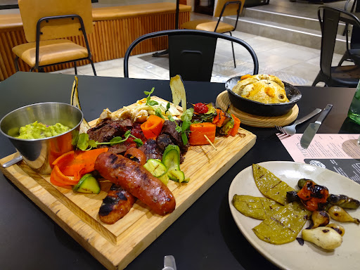 El pan que te dan nada más recibirte es delicioso, llega calentito y esponjoso a la mesa, bien escoltado por una buena salsa y un chimichurri medianon; las entradas en buenas porciones y con sabores que quieres repetir; dónde creo que se quedan algo cortos es en la carne, producto de mediana calidad y algo pasado de cocción, pero lo compensan sus acompañamientos, unas buenas verduras asadas, algunos chiles toreados (habanero incluído) y nopales.