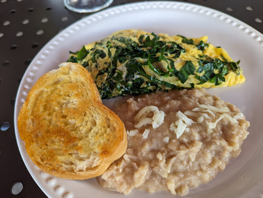 Vegetable omelette is good! Not too salty. Comes with beans or salad and a buttered toast.