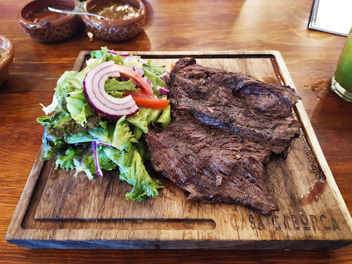 This is definitely my favorite high quality grill Place. Casa Caborca (named after a well know place In Sonora for its historical cattle and a famous chid-saint from last century) offers chilled mixology according to season, personal service by its well trained staff and amazing steaks. Try their Kobe beef, their Top Ribeye 🥩 (their #1 seller so order quick! ) and their choices of High Choice Angus Steaks like New York, Ribeye gilet , flank steak and the Brazilian Picaña (sirloin tip) or go for the “whole enchilada ) and order their Tomahawk or Porterhouse by the ounce; grilled to your choosing or please allow the grill expert (parillero) to choose it for you. Chef Vargas is a prized Chef with ample experience under his chef hat having worked in NY and other metropolitan cities in Mexico and abroad. If your more of a chicken person here you will find the best cordon blue breaded chicken. Sides are amazing and pastas, pizza and appetizers are delicious. When I think meat I think...