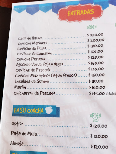 Parece que borraron mi comentario pero con gusto lo vuelvo a poner, tal parece que no aceptan sus errores. En esta ocasión que visitamos el lugar en familia, yo pedí un ceviche de atún, sin embargo para empezar se tardaron muchísimo en darme mi orden, hasta pareciera que despistadamente se les había olvidado... y cuando por fin me lo traen me traen ceviche de pescado y me dicen que "viene siendo lo mismo" 🙄 cuando les digo que lo que pedí fue atún y no pescado, me dicen que no tienen... y que me cancelaban el pedido pero que cocina ya había cerrado. Mi decepción fue que me quisieron dar gato por liebre y que no me dijeron desde un principio. Con un, no tenemos habría Sido más que suficiente, habría pedido otro de sus platillos. Mi sugerencia: si no manejan ciertos platillos quitenlos del menú, informenle al comensal que no cuentan con tal o cuál cosa, y sobre todo no le quieran ver la cara de tonto a uno. Quedé bastante decepcionada. No creo que vuelva a regresar a este restaurante. Espero hayan quitado el "atún fresco" de su menú y que ya no le mientan...