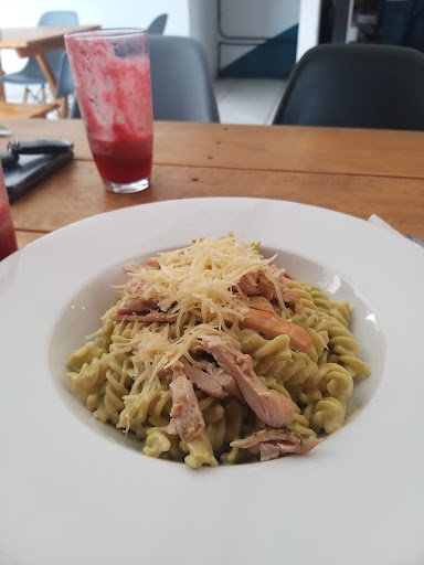 Me lo recomendaron y rebasó mis espectativas. Un lugar muy bonito, decoración moderna, muy limpio, respetando las medidas sanitarias. Respecto a la comida, tienen gran variedad en el menú, desde pequeñas pizzas y pastas, hasta corres finos, aguas frescas de frutas, hechas en el momento. La HONEY BURGER, recomendadísima, muy sabrosa, es con carne de res, tocino ahumado queso manchego maduro y parmesano, y una salsita de miel muy rica, acompañada con papas. De las pastas especiales, la FUSILLI E AGUACATE, que está preparada con pollo a la plancha, salsa de queso con aguacate y jitomates cherry, está deliciosa, una combinación diferente que me encantó. Todos los aderezos muy ricos y los precios accesibles. En cuanto al servicio, fue excelente, a pesar de que sólo era un chavo quien hacía todo, el servicio fue muy agradable y eficiente. Es cuando te das cuenta que no necesitas un ejército en un restaurante para que sea bueno; cuando hay disposición y amor por lo que haces, este es...