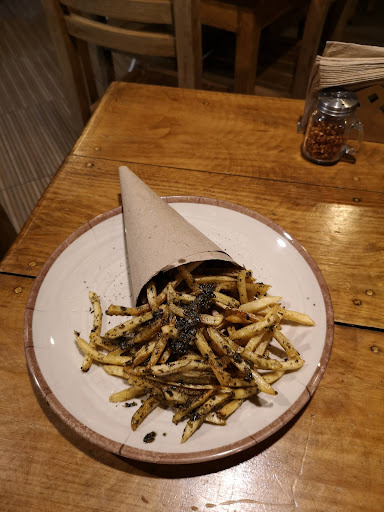 Las porciones son generosas y los precios bastante razonables, lo que hace que el lugar ofrezca una excelente relación calidad-precio. Una mención especial merecen las papas fritas al pesto, que son un imperdible en el menú. Aunque las aguas frescas pueden variar en sabor según el día, esto no afecta la experiencia global, que es altamente recomendable.