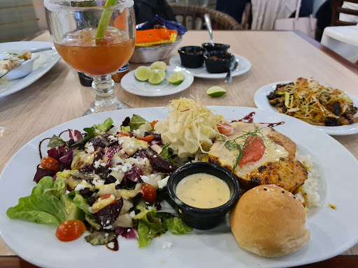 Los meseros muy amables y dispuestos a hacer su trabajo, como debe de ser, (solo que el nos tocó, no sabe de modales, se atravesaba entre uno, mientras platicábamos y tomábamos cosas de los platillos, el señor atravesaba medio cuerpo y demasiado entre nosotros para agarrar las cosas y ni un “compermiso” decía, 😳 pero es muy raro que pasen esas cosas, por lo normal, son muy educados y serviciales los meseros, pienso que era nuevo este mesero) la comida deliciosa, de verdad que lo que pidas está MUY rico, pero de las cosas que me fascinan y siempre pido, son: la sopa marinera, camarones Philadelphia, camarones a la diabla, la tostada de cebiche de camarón.