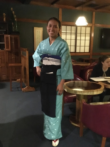 Read moreOur first Japanese dinner since leaving Los Angeles and we came with trepidation. With the exception of Sushi Koi in Mazatlán, we haven't had the best experience at Japanese restaurants. So we went without great expectations. Shab-shabu, box dinner, shrimp tempura roll sushi and eel sushi were the choices. What a pleasant surprise! The sushi rice, although falling apart from the sauces, was well seasoned and textured. The box dinner must have had at least fifteen differently prepared items plus soup and rice. The shabu-shabu is a hot-pot dish with option to have it prepared in the kitchen or at the table. I chose to prepare it at the table so I could prepare it as I wanted. A plate of nicely marbled very thinly sliced beef and a generous pile of vegetables, tofu and noodles to cook in a pot of boiling water. It came with my preference, soy lemon with green onion sauce and a peanut sauce. I missed not having a sesame sauce - my favorite one for the vegetables. But for a rainy night such as this one, the steaming dish was perfect! For a new experience, I would recommend trying this. Ask the waitress to help you get started - you will see first hand how the dish got its name - from the swish-swish of the very thinly sliced meat in the boiling water that is cooked in a few seconds. There were several teppan tables that seemed quite popular - all full by the time we left around 9. The chef prepares the grilled dinner right before you. The restaurant is large, with a spacious dining room with several teppan grill tables. There is a big lounge with live piano music in front and a lovely Japanese garden complete with koi pond in the center. But one thing that really impressed me aside from the delicious food was the waitresses. They were all dressed in complete kimonos. They each had to learn how to dress themselves in the kimono and under garment, a traditional obi, and maybe seven or more different cords and strings around their middle to hold it all in place. It takes them a half hour to dress each day. You don't find many restaurants that go to these...