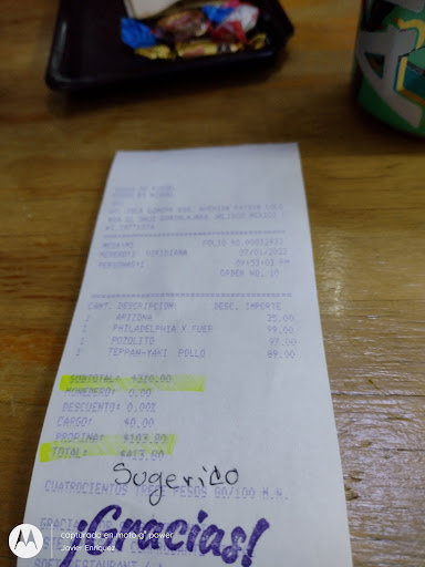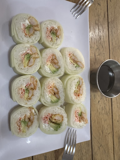 We had the number 38 roll which has crab, fried shrimp, avacado, cream cheese and has cucumber on the outside of the roll instead of seaweed which was different. The ingredients were all very fresh. The roll was served with two different sauces that were nice. One was soy with peppers and one seemed to be a vinegar and pepper sauce. They did have regular soy sauce and wasabi available upon request. They have a very good looking menu with lots to choose from. They have Sapporo beer, which my wife likes so that was nice. They served the roll with forks, not chopsticks which was really weird to us. Although we didn’t specifically ask for chopsticks, they didn’t offer them either although that expectation could be just because we are gringos and haven’t been to a Japanese restaurant in Mexico before and maybe they just don’t do that here like they do in the US. The only thing that I really didn’t like at all was how tiny the place is. I think there are 5 tables plus the sushi bar. It was so small that the three waitstaff were standing around just a couple feet from our table the whole time which was very strange and awkward although they were very polite and attentive. This is a popular spot. In the short time that we were there 4 of the 5 tables were occupied and a couple of people came in to pick up to go orders and a couple of Didi drivers came in to pick up...