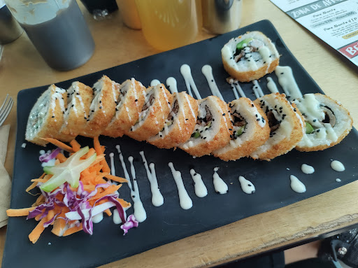 Llegamos 8:10 de la noche, estaban a punto de servir los platillos de la mesa de a lado, sus rollos estaban muy bien servidos, bastante decentes. Cuando llegó nuestro turno, esperaba que se vieran igual de bien o mejor, ya que los rollos que nosotros pedimos eran de los especiales y de los que tienen el precio un poco más elevado, pero fue todo una decepción, hablando de mi comida primero era una miniatura, supuestamente tenía Philadelphia pero parecía como que solo le hubieran dado una embarrada, pero eso no es todo! Ni siquiera era el rollo que yo había ordenado, estuve esperando más de media hora para me sirvieran Y se equivocaron! El encargado se acercó y me dijo que el mesero se había equivocado y que había metido otro rollo diferente a lo cual le contesté… es que yo pedí este, no el que me sirvieron y me constesta… bueno pero si algo le molesta se lo puedo cambiar o sea como diciendo pues que igual me lo podía comer a menos que no quisiera. Por otro lado el de mi pareja llevaba salmón y la misma historia, era prácticamente puro arroz. Al momento de pagar, pedimos la terminal y el mesero le aventó el ticket a mi pareja, bueno… en conclusión tuvimos una...