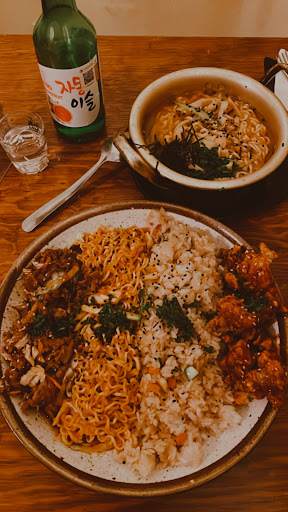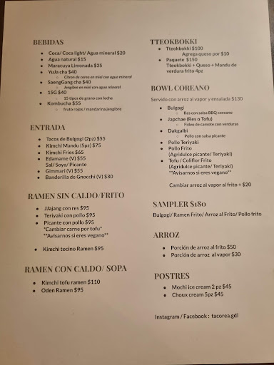 Read moreNos animamos a ir conocer este lugar porque nos pareció una buena opción. El lugar el pequeño pero acogedor. Tiene alrededor unas 10 mesas. Su menú tiene un poco de todo, y me gusto el hecho de que tenga un platillo con 4 de sus principales sabores. Este platillo de llama Sampler, y es como para 1 persona y media (dependiendo de la cantidad que consuma cada persona), puede ser más o menos. En mi opinión creo que es un estilo de "comida rapida" koreana, pero con un excelente sabor. El pollo agridulce es super delicioso. Y el espagueti picante ni se diga. Es algo rico y diferente. El precio es de los más accesible, como ven en el menú, y claro que dan ganas de regresar a probar más platillos. Ahora que porque le doy 4 estrellas? No me gustó para nada que metieran una mesa delante nosotros. Resulta, que puedes llamar para reservar tu mesa si les interesa ahorrar tiempo( solo asegúrense que confirmar el día y la hora que quieran y que no haya error humano) . Pues llegamos y como en todos lados te piden tu nombre para ponerte en lista de espera, y cuando le pregunte al chico había 2 mesas delante de nosotros, es decir éramos los terceros. Cuando pasó la primera mesa y faltaba sólo una mesa para nuestro turno, pues llegó la señora Ana, (alcance a esuchar), y pues la señora había hecho reservacion, pero los del lugar se equivocaron y habían puesto su reservacion para el día domingo y no para el sábado. Al muchacho que controlaba la lista, sin importarle y sin consultar, los puso delante de nosotros. Obviamente entiendo perfecto que fue un error humano, sin embargo, creo que tan importante es la señora Ana como clienta, como lo eramos las otras 2 mesas que nos quedamos esperando por la mesa. Me hubieraa gustado que el muchacho hubiera explicado la situación, y darle la importancia a Ana como a ls otras 2 mesas. Se que me algunos me dirán lo a desesperada, no se si fue el hambre que tenia, y la impotencia de que al muchacho le valiera 3 cacahuetes el resto de las mesas pero no me gustó para nada la actitud con la cual lo hizo. Fuera de eso, la comida...