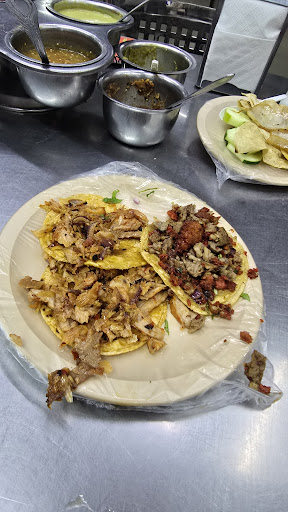 Read moreComentan que son muy buenos y la verdad para ser mi primera experiencia dejo mucho que desear y expondré los puntos con la intención que mejoren el servicio fue malo llegamos antes y atendieron a otras personas lo cual tuvimos que pedir que nos atendieran Las salsa son malas,me toco la salsa verde super salada que hasta escaldo la lengua aparte con mosquitos en una de las salsas (es bien importante que revisen lo que van poner de servicio antes que sea una mala impresion). El pastor le falto asarse me encontré con pedazos crudos... desconozco cuantas horas deben ser previamente cocinado Le falta mantenimiento a los baños me toco estar agarrando la puerta para que no se abriera y encima esta al descubierto. Lo bueno .. El agua de melón my bueno 👍